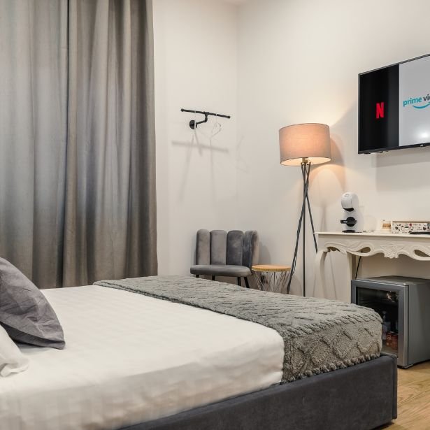 Completamente rinnovata e progettata con attenzione a ogni dettaglio, la struttura unisce atmosfera, design e comfort, offrendo un'esperienza di soggiorno curata e rilassante. Dispone di tre camere eleganti, confortevoli e moderne, tutte con bagno privato, arredate con stile e pensate per garantire il massimo benessere. Ogni camera è dotata di aria condizionata, TV a schermo piatto, Wi-Fi gratuito, minibar rifornito con bevande incluse e macchina da caffè con capsule incluse.
